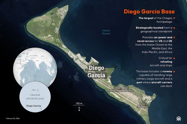 Diego Garcia is a strategic base jointly owned by the UK and US – Click image to enlarge (Picture: Mehmet Yaren Bozgun/Anadolu via Getty Images)